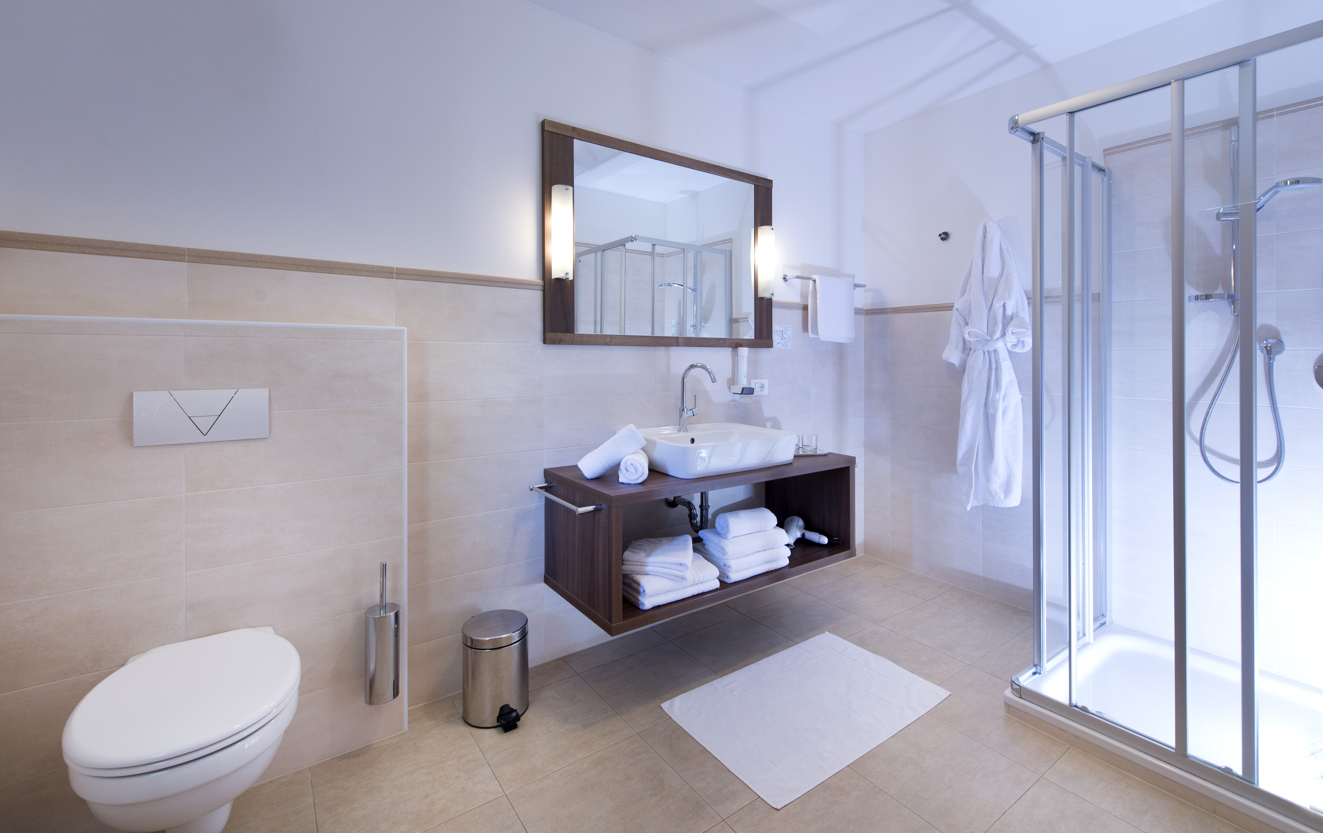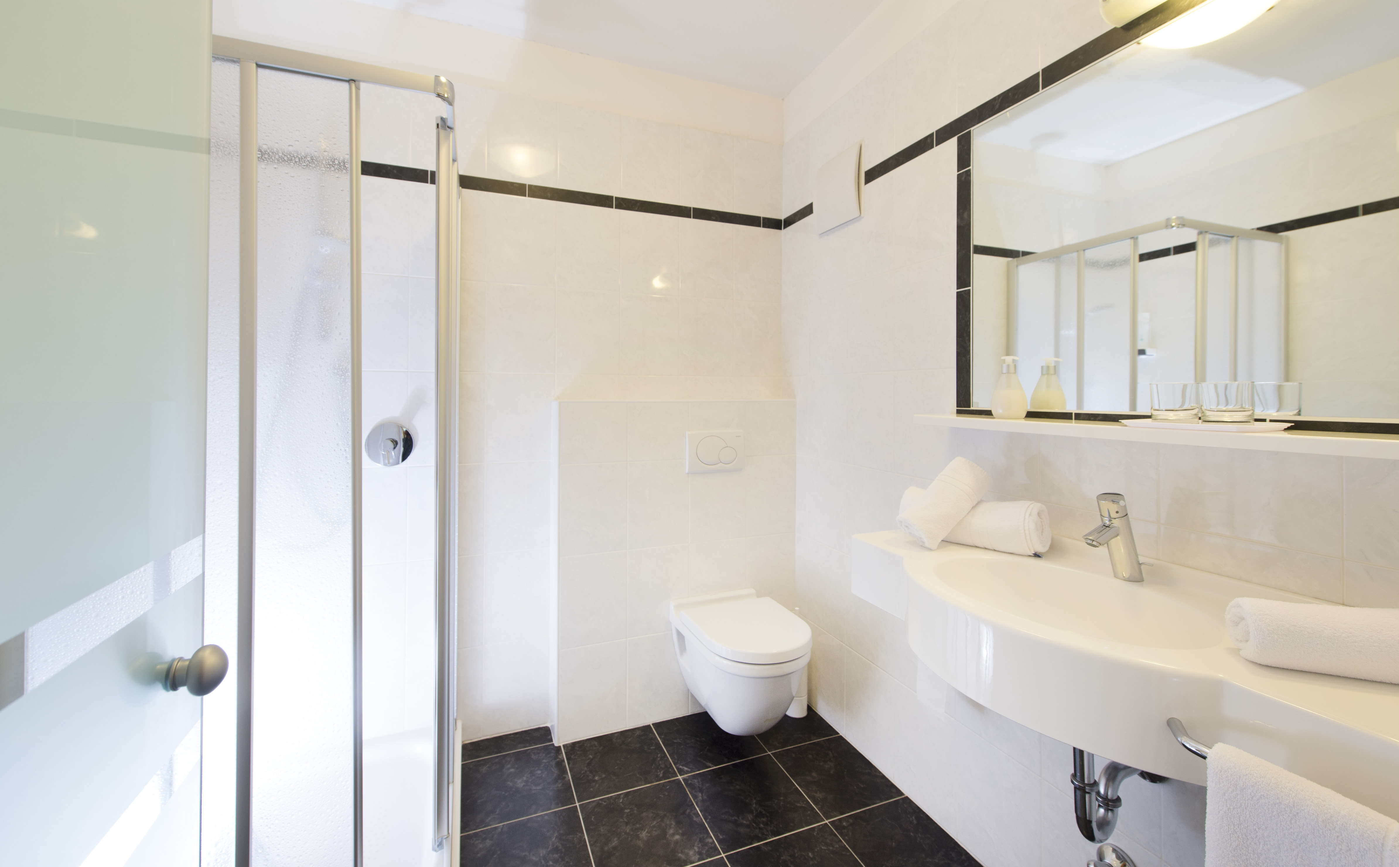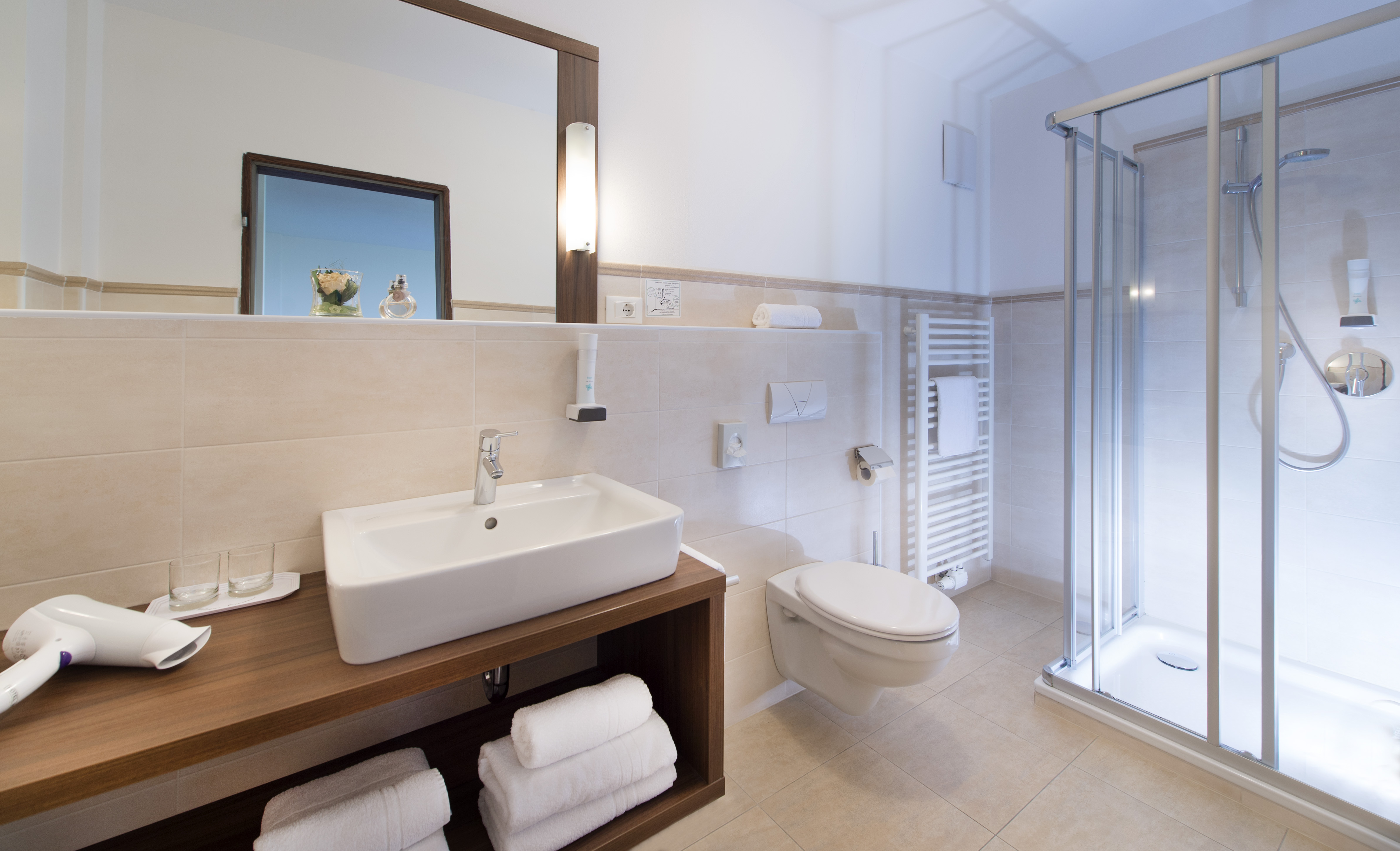 Gemütliche, ruhige Juniorsuite mit Schreibtisch, Doppel-Schlafcouch, Sat-TV, Radio, Tresor, Telefon, Minibar, Badezimmer mit Dusche/WC, Haarföhn, Loggia zur Südseite mit Blick auf Freibad/Garten.