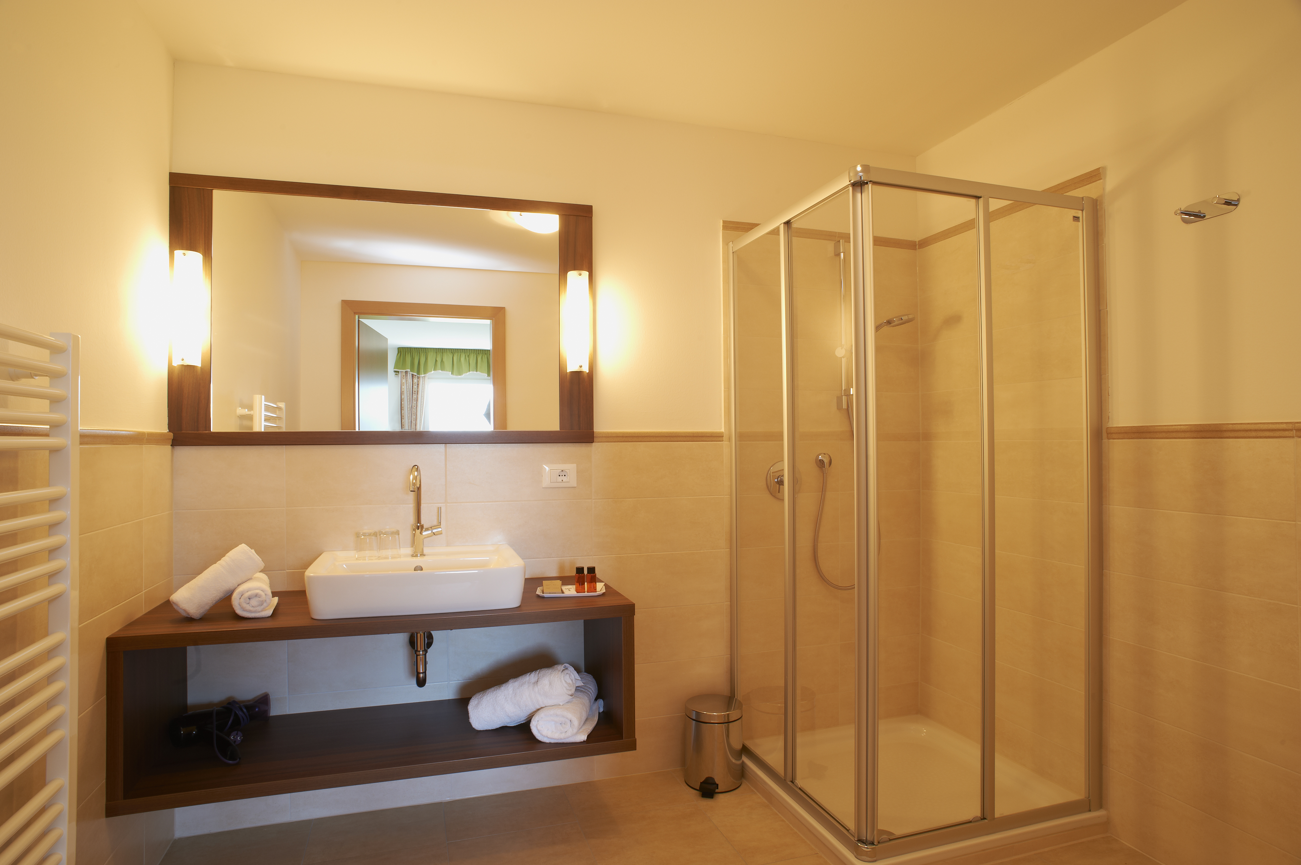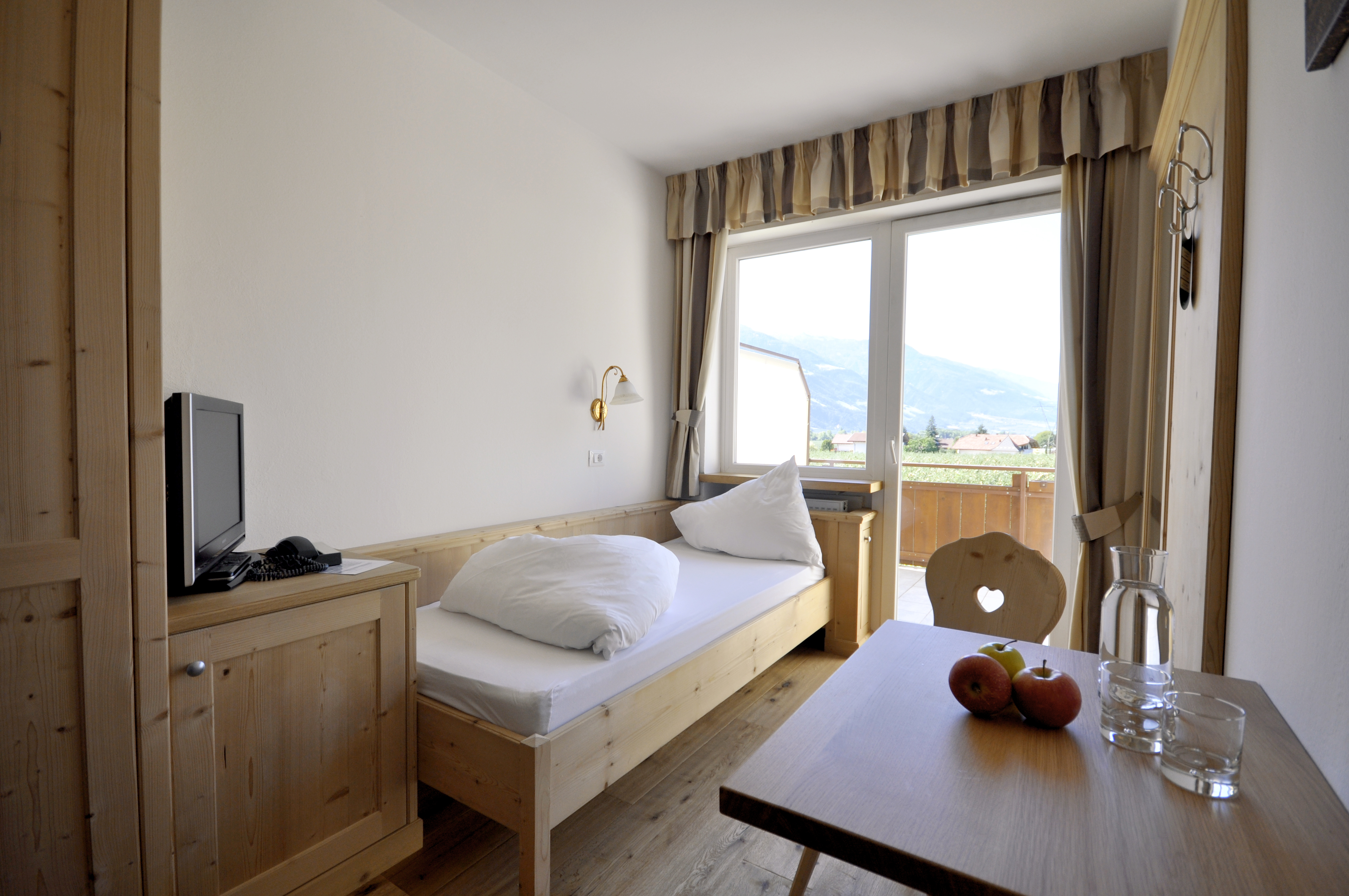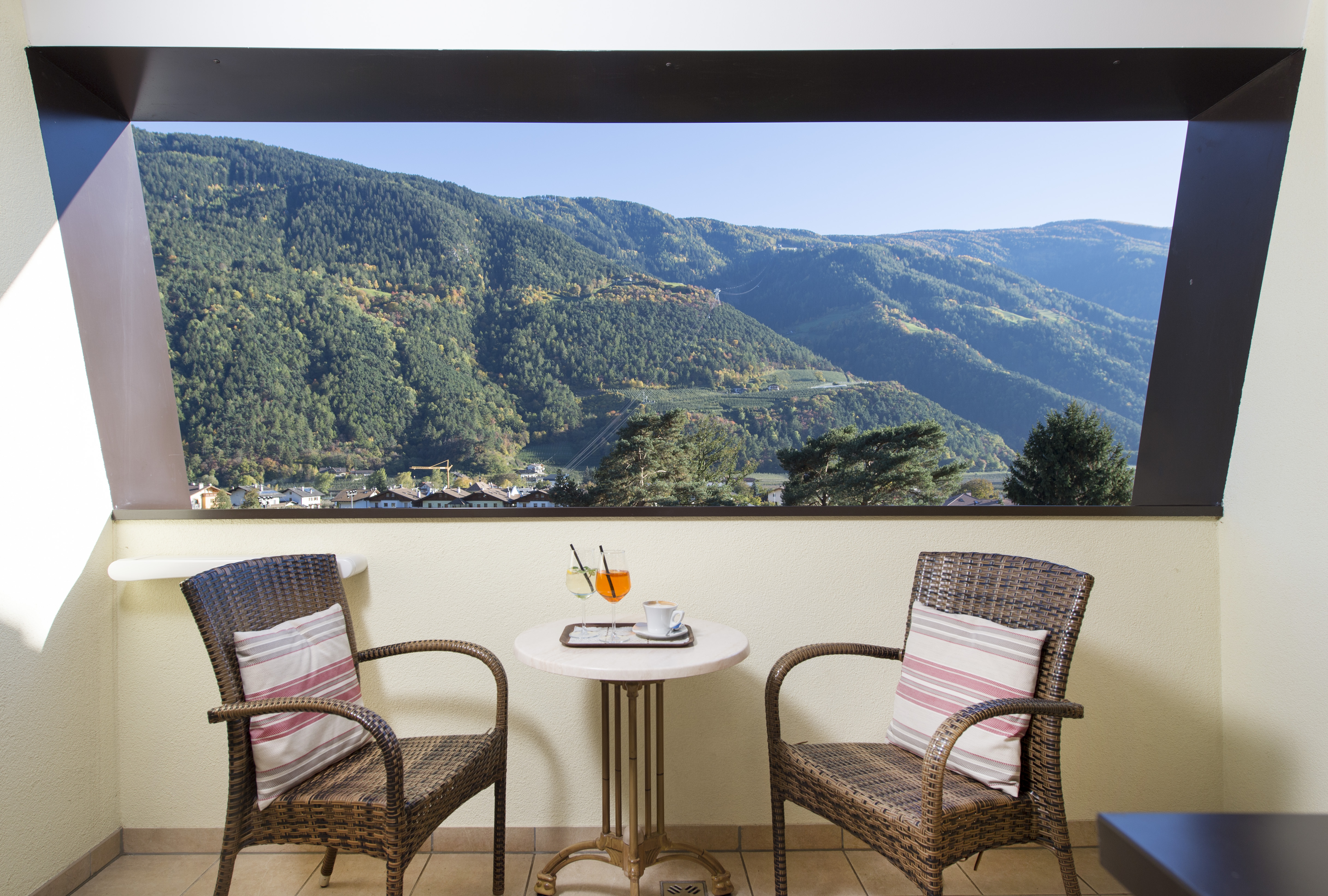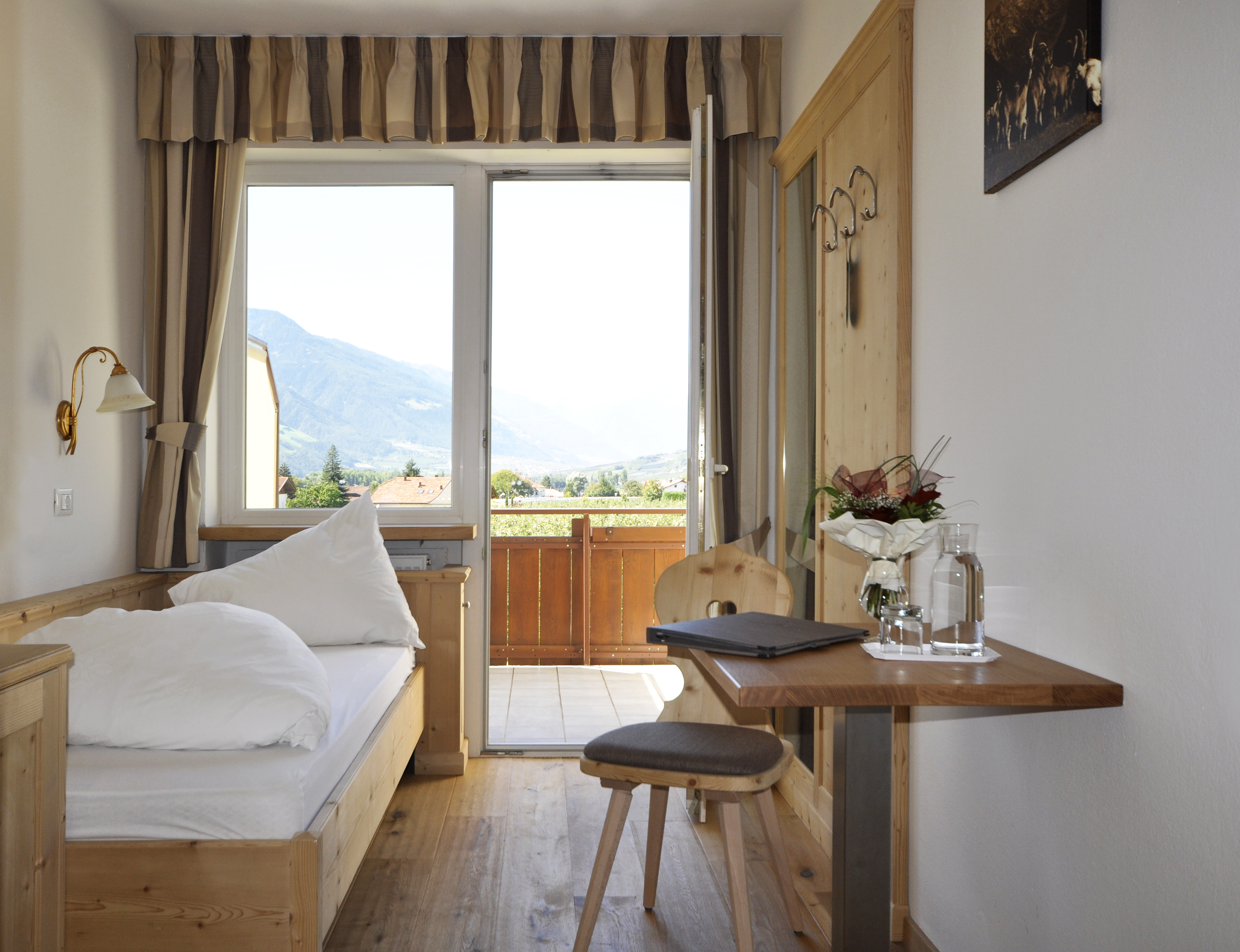 Juniorsuite mit Schreibtisch, Sitzgelegenheit und Schlafcouch,Sat-TV, Radio, Tresor, Telefon, Minibar, Badezimmer mit Dusche/WC, Haarföhn, Loggia zur Westseite mit Blick in den Vinschgau.