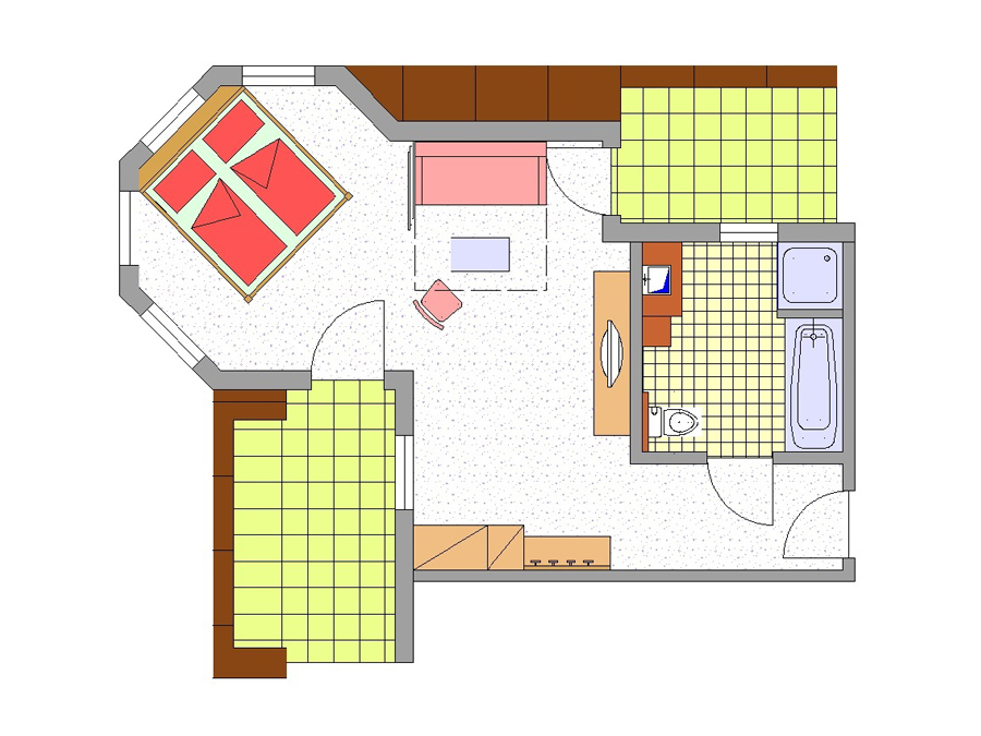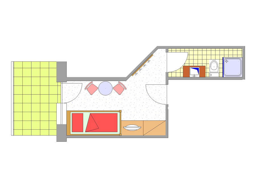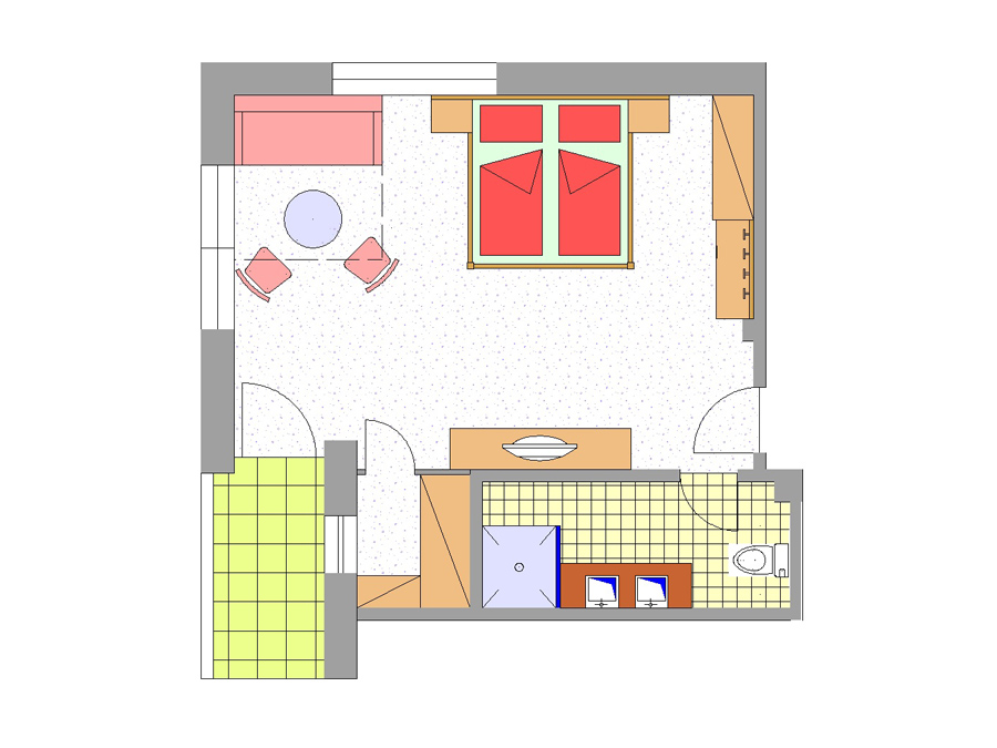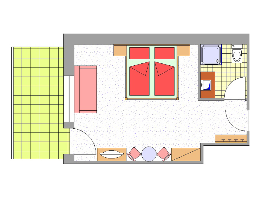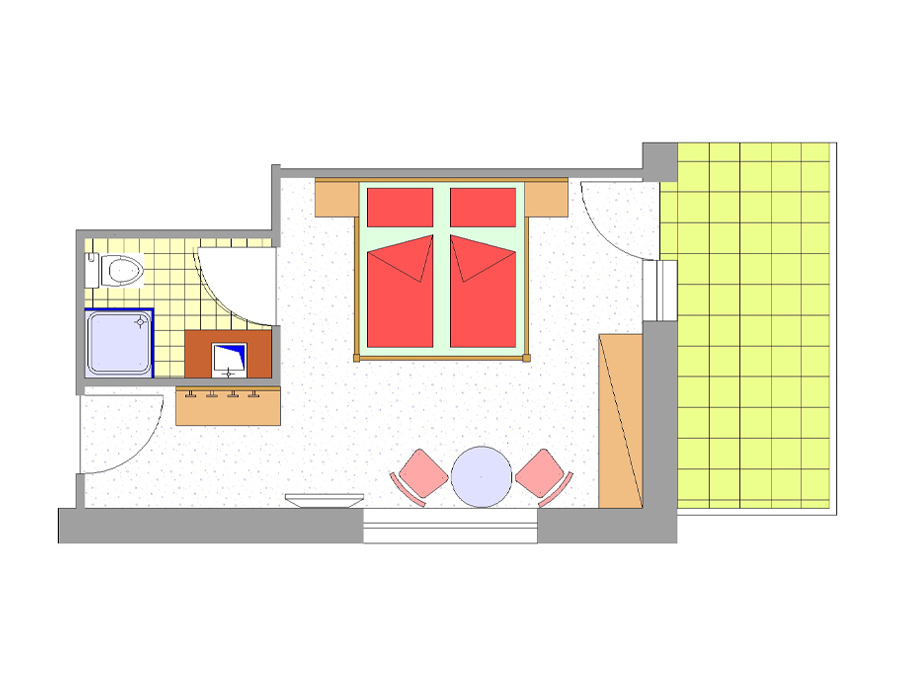 Aufgrund der Vielfalt unserer Zimmer, sind geringe Abweichungen in der Raumaufteilung, der Einrichtung oder der Anzahl der Quadratmeter möglich.